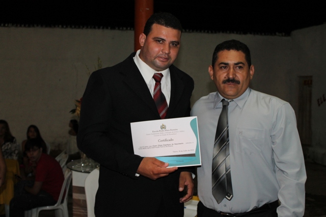 Nesta sexta - feira dia (19), foi realizado a solenidade e entrega de certificados dos Formandos 2013 do EJA (Educação de Jovens e Adultos) da Escola Pedro Pires Ferreira, A formatura contou com a presença dos padrinhos da turma, O vereador Aldo Santana, A vereadora Nelly Sampaio, o Major da PM, Marcílio Valadares Pires.